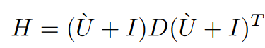 对于上面的公式,如何确定$U$,根据重建的目标函数,令$U=\acute{U}$,对$H$进行LDL分解得到$\acute{U} $(它可以将一个对称正定矩阵A分解为一个下三角矩阵L、一个对角矩阵D和一个下三角矩阵L的转置的乘积,即$A = LDL^T$。其中,L是单位下三角矩阵(对角线元素为1,其它元素的下三角部分可能不为0,上三角部分全为0),D是对角线元素为正数的对角矩阵。: